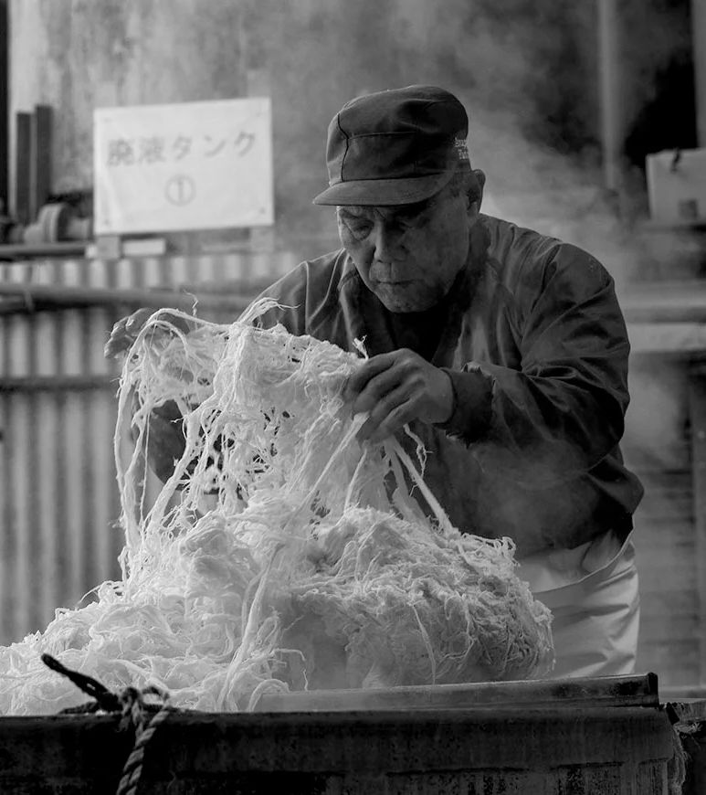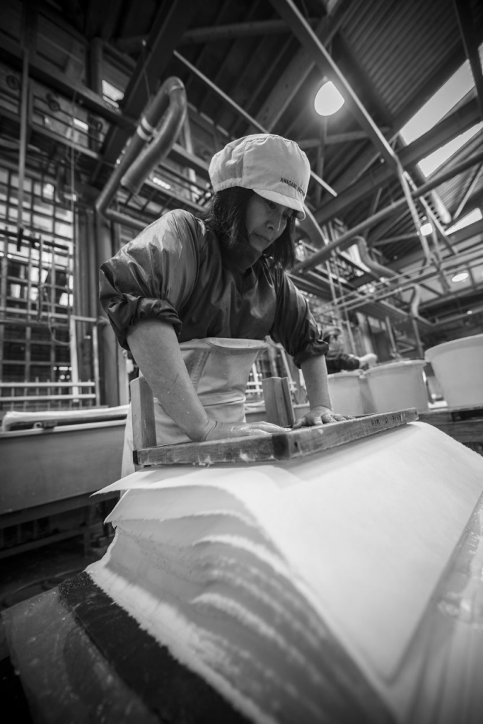 Voor Bart van Ulden was het een logische stap om zijn met zorg gefotografeerde zwart-wit taferelen alleen te willen toevertrouwen aan ambachtelijk Japans papier. Zo begon de zoektocht naar de juiste papiersoort, met als voorwaarde dat de druk niet mag ‘vloeien’ en het papier een meerwaarde geeft aan de foto. Ook de aanraking van het papier moest een zinnenprikkelende sensatie opleveren.